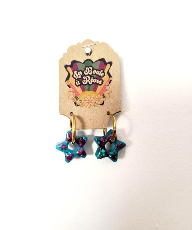 Boucles d'oreilles en résine, avec créoles rondes de 20mm en acier inoxydable doré or 18k (placage PVD)