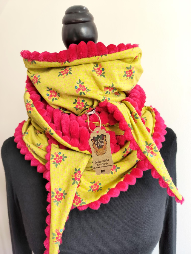 Écharpe triangle en jersey de coton et minky.