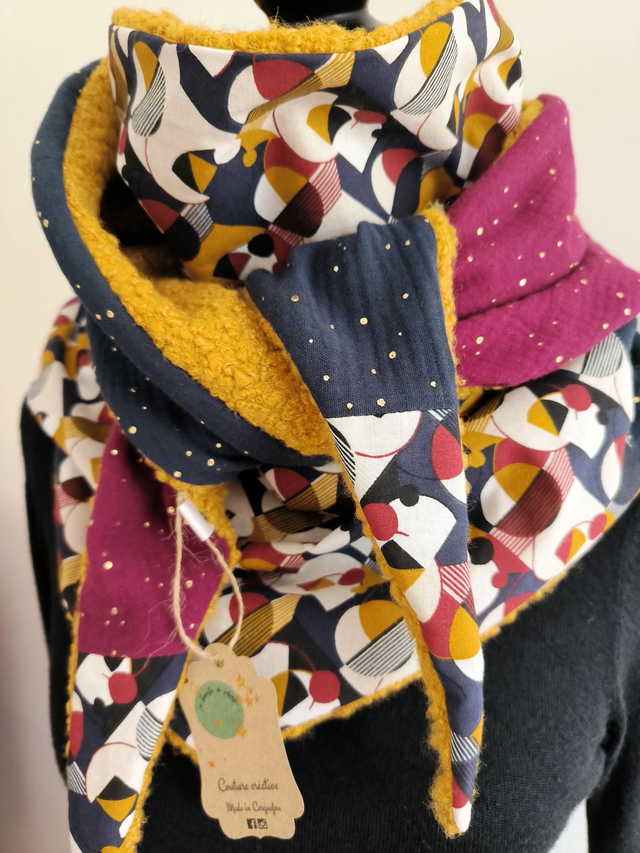Écharpe triangle en coton et tissu bouclette
