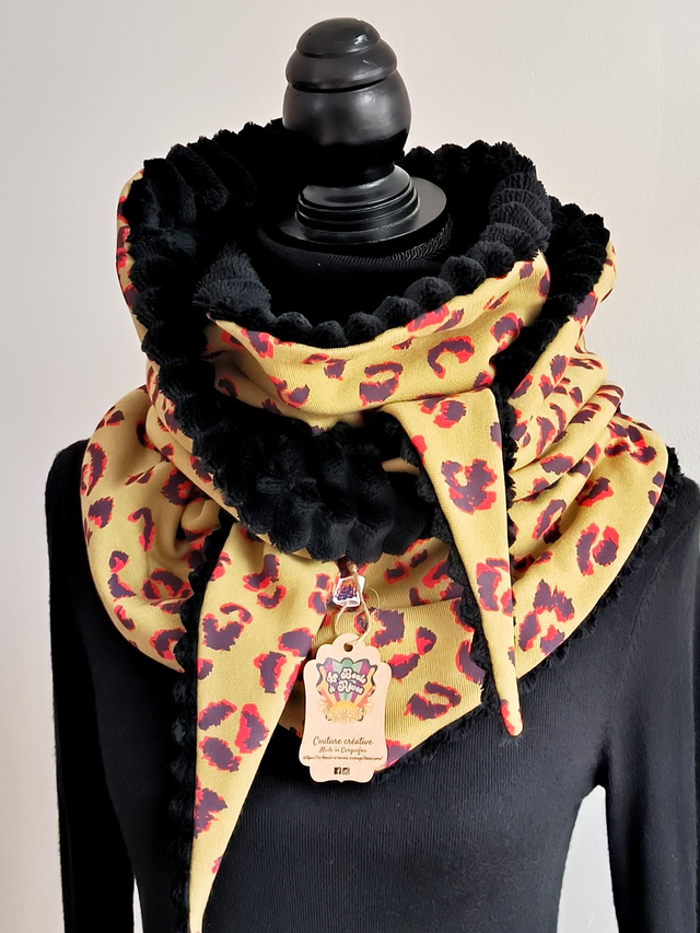 Écharpe triangle en coton et moumoute côtelée