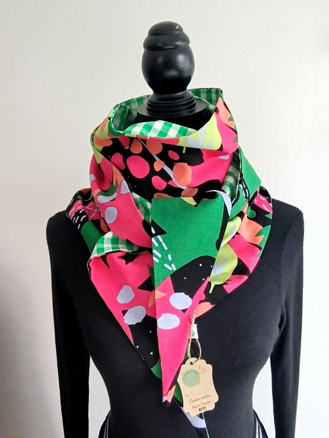 Écharpe triangle en viscose/lin et coton.