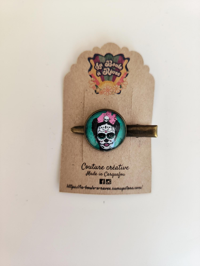 Barrette en métal finition bronze et en verre.