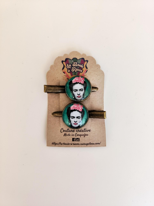 Barrettes en métal finition bronze et en verre.