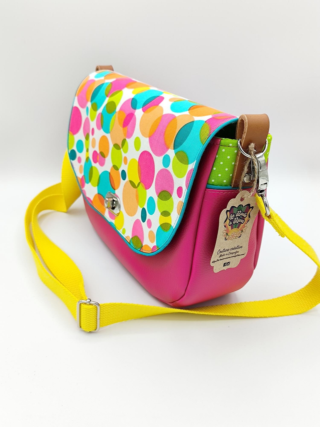 - Extérieur : simili cuir, rabat coton/polyester. Sangle en coton réglable. Fermeture du sac par 1 fermoir tourniquet.