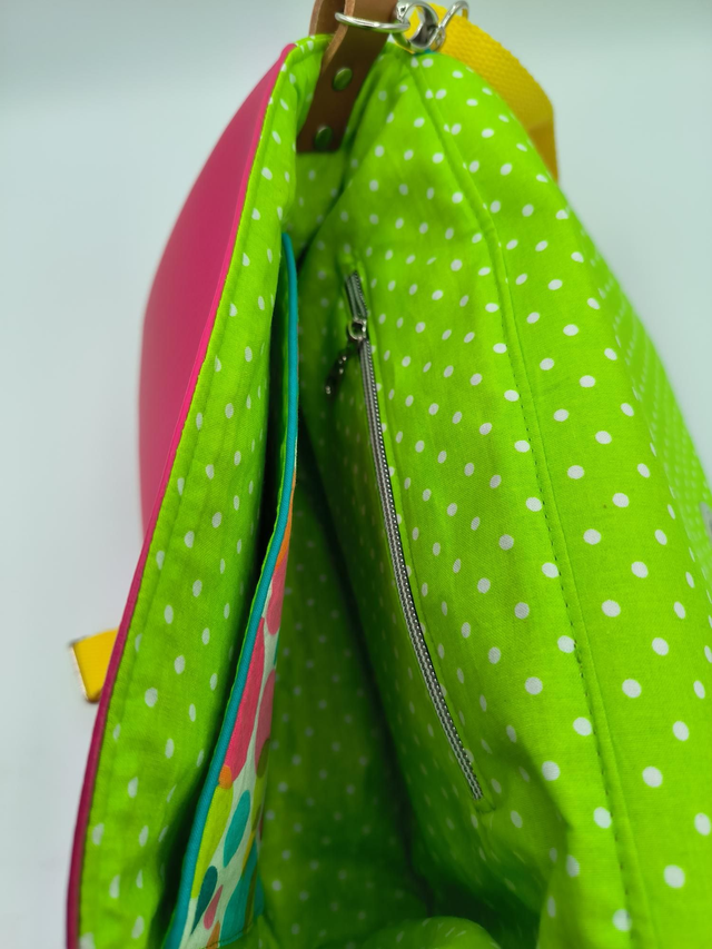 - Intérieur : doublure en coton. 2 poches intérieures (1 plaquée, 1 zippée).