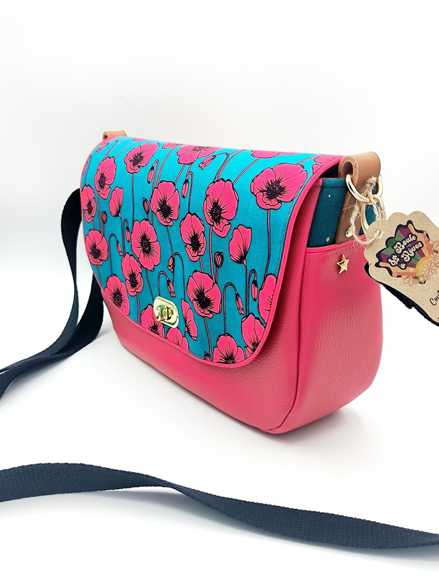 - Extérieur : simili cuir, rabat en coton. Sangle en coton réglable. Fermeture du sac par 1 fermoir tourniquet.