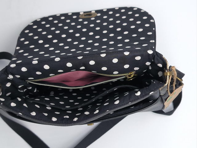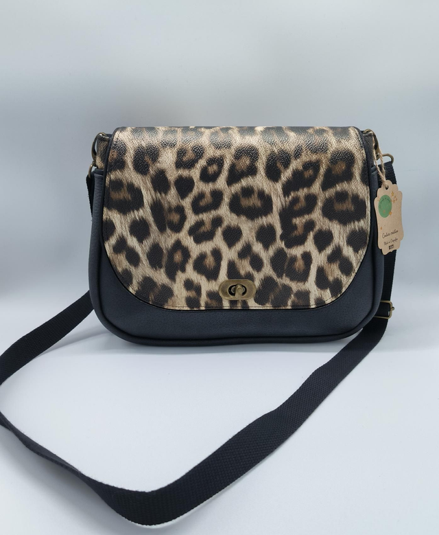 ⚡ Extérieur en simili cuir noir et rabat en simili cuir léopard. Sangle ajustable en coton. Fermoir tourniquet couleur laiton vieilli. 1 poche plaquée extérieure.