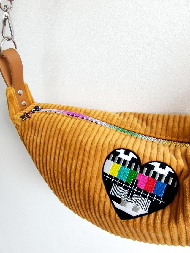 Sac demi-lune au look rétro vintage avec ses 2 patchs brodés.